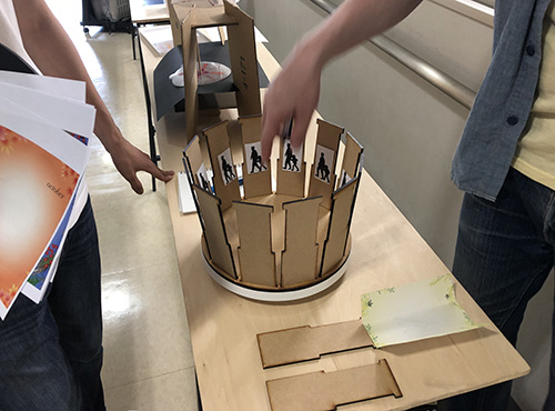 「新しい体験のデザイン」についてのエクササイズが終わると、いよいよ作品制作に向けて動き出します。この授業の目指すゴールは、自ら「新しい体験のデザイン」を考えて、外部展示会場にご来場したお客さんに楽しんでもらえる作品を作ることです。