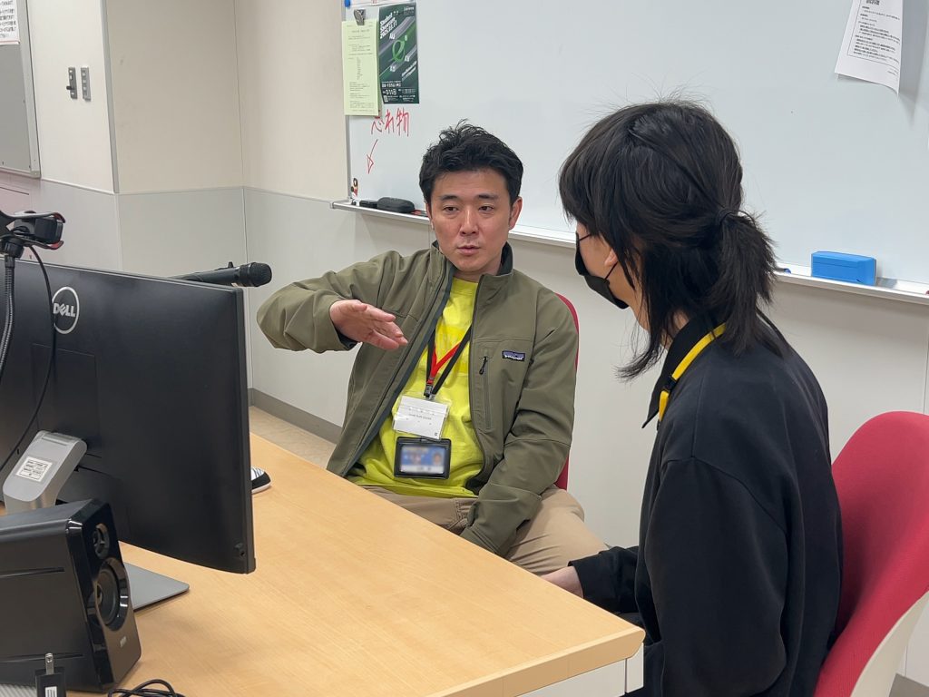 そして、第3部では、学生がこれまでの努力を詰め込んだポートフォリオ(作品集)の公開講評が行われました。採用担当者としての視点から、「良い作品」の条件や、改善すべき点について、真摯にアドバイスをいただきました。学生一人ひとりが自分の作品に込めた思いを山崎氏や阿部氏に伝え、そのフィードバックを真摯に受け止めることで、次へのステップへの大きな一歩を踏み出しました。