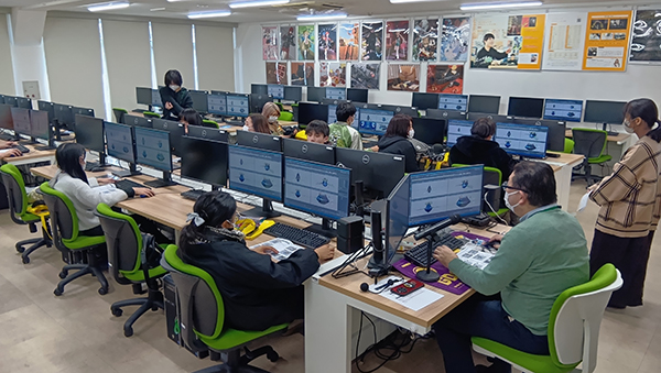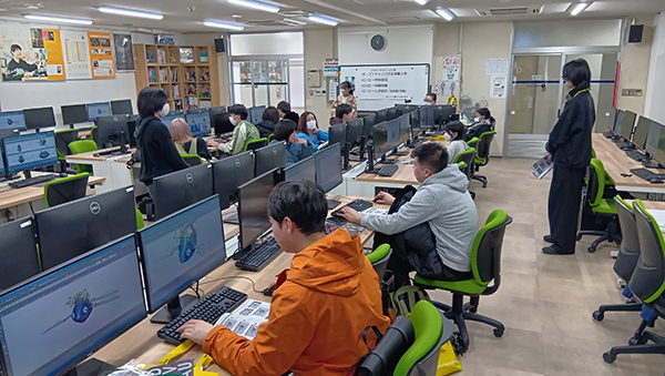 9号館の地下から3階のコンピュータグラフィックス科の実習室に移動します。