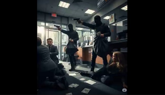 強盗が銀行強盗をして逃亡する