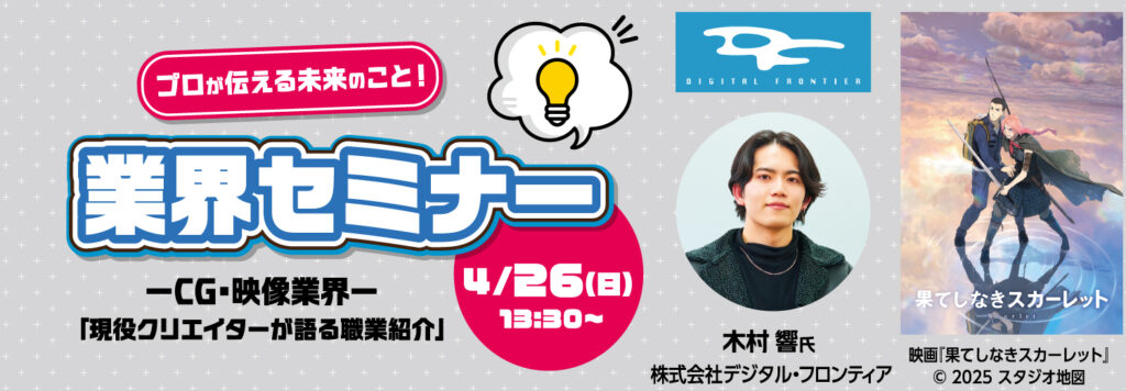 この日はオープンキャンパス終了後に、「CG映像制作科 卒業生による業界セミナー」を開催します!