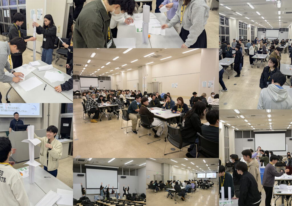 ペーパータワー作りやクイズに挑戦!サポート役の2年生も飛び入り参加し、会場は大盛り上がりでした!