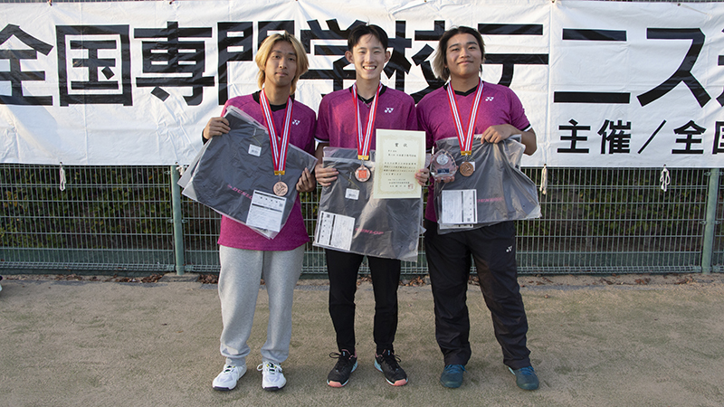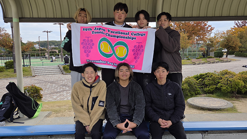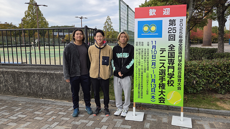 倉敷スポーツ公園(岡山県倉敷市)で開催された第25回全国専門学校テニス選手権大会にテニス部が出場しました。