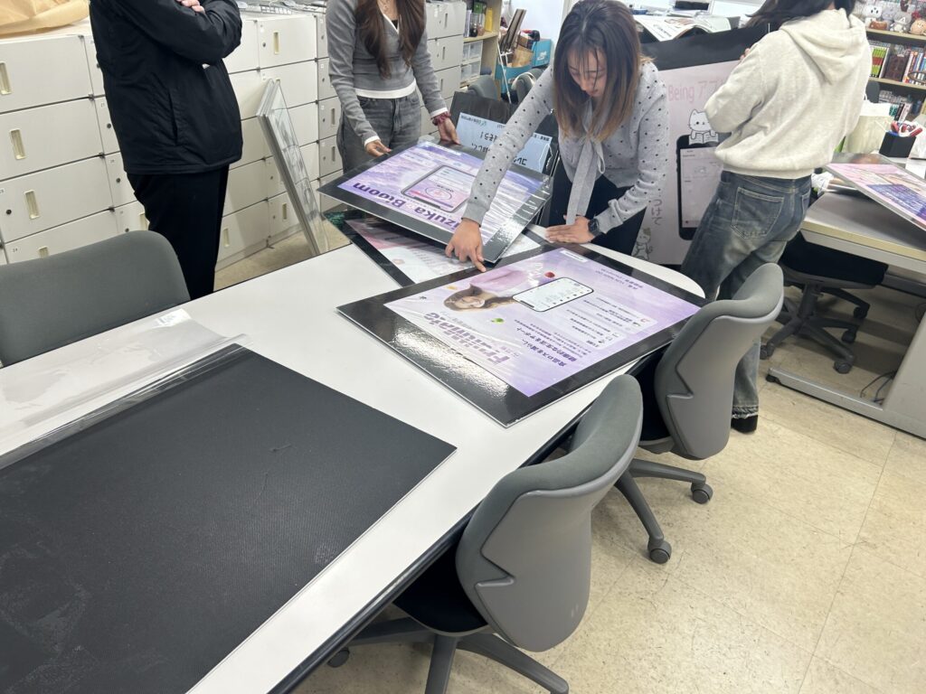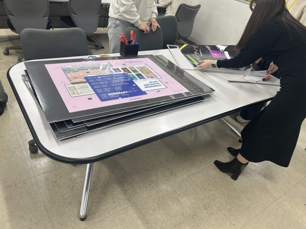 展示するポスターは授業で作成した画像データをもとに、手作りで作成!