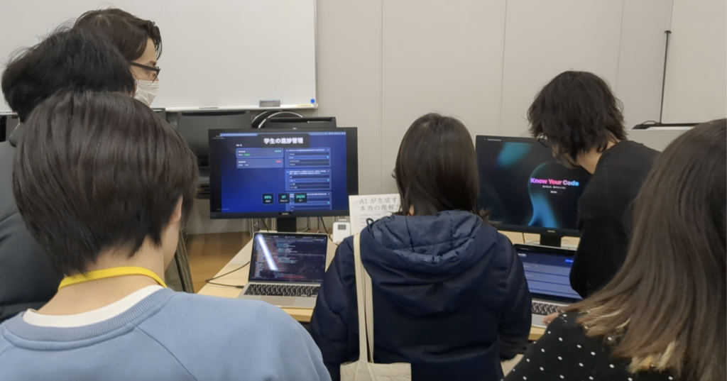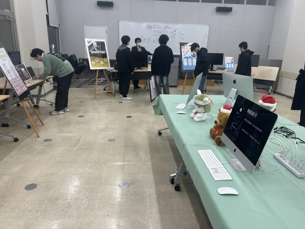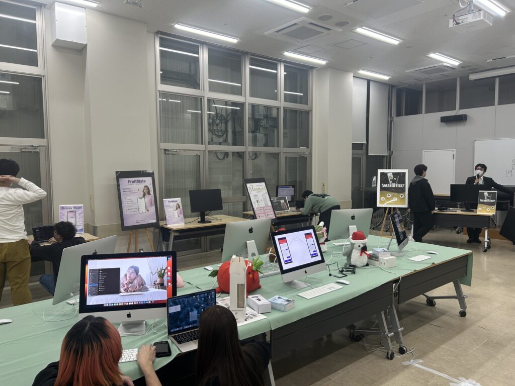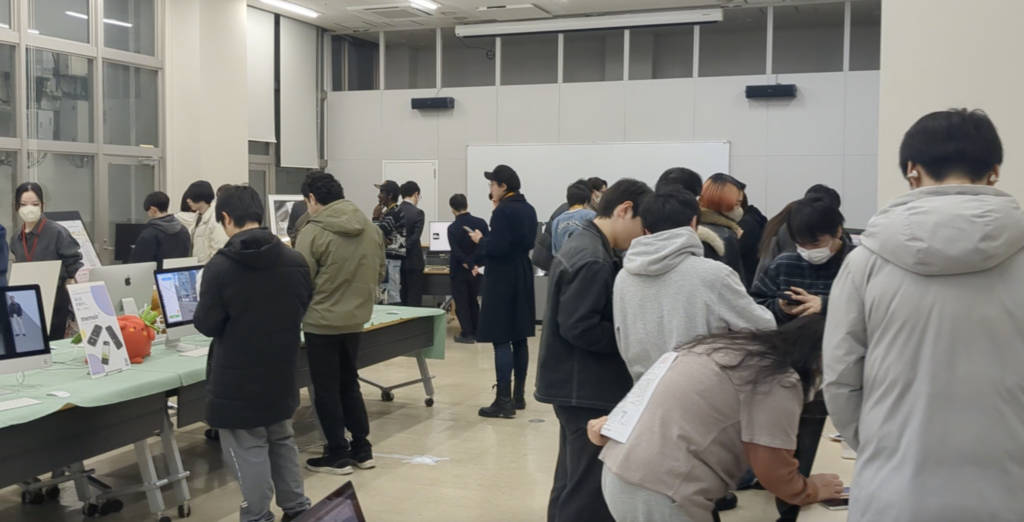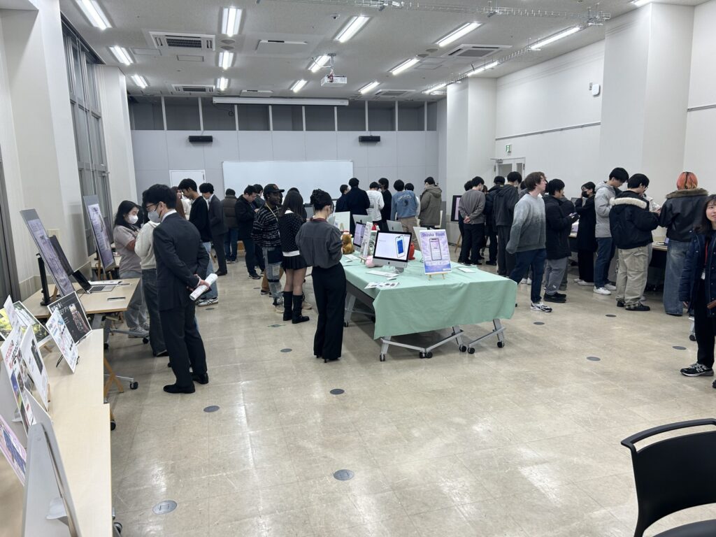 会場には1年生の姿も多く見られ、先輩たちが作ったアプリで使われている技術や考え方を積極的に質問する姿も見受けられました。彼らが主役となる来年の卒業制作展も楽しみです!