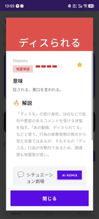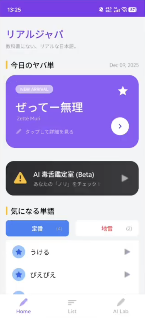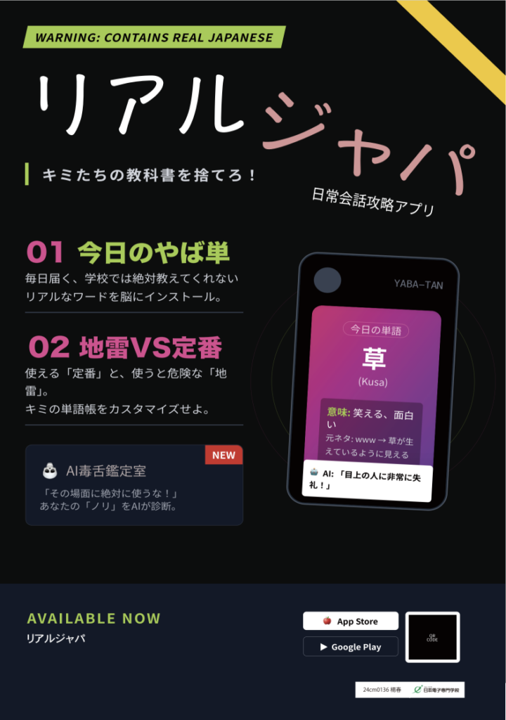 本来の意味とは違う使われ方をしたり、意味が変わっていたり、目上の人に使うと大変な「ヤバい」単語、その名も「ヤバ単」を数多く紹介してくれる留学生向けアプリ。