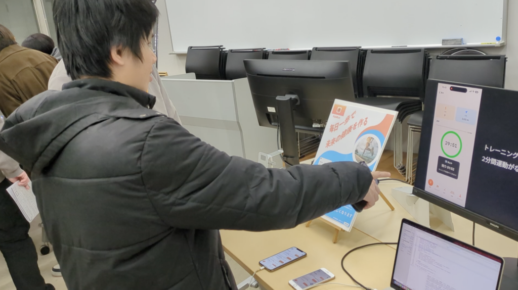 アプリのデモンストレーションを行ったり、直接触ってもらいながら参加者にアプリを説明しています!