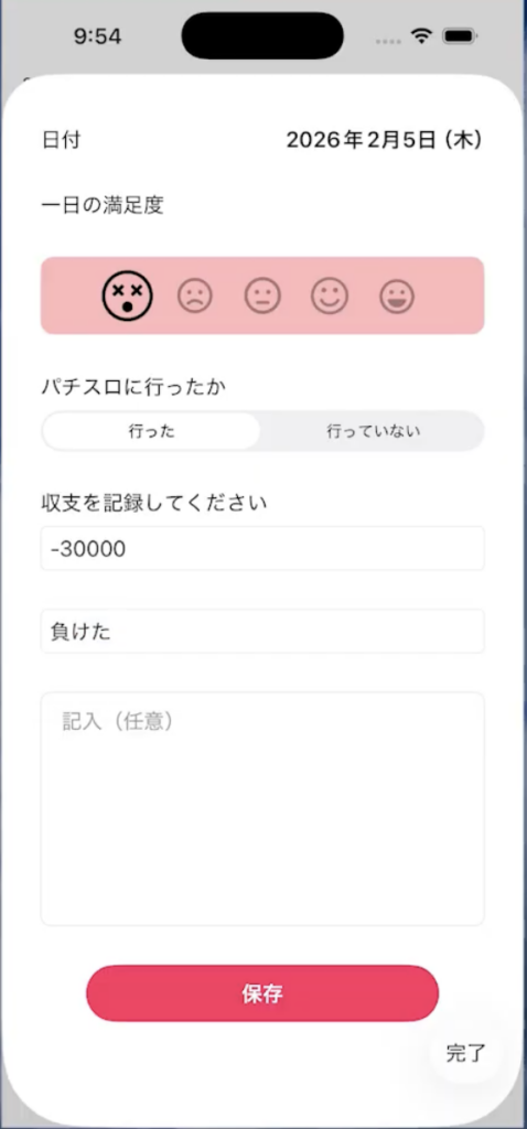 パチスロでたとえ勝ってもポジティブな記録がなされない日記モード。目標の設定と達成した時の思い出記録。今月負けた金額があればこれだけの体験ができたことを振り返らせる収支報告などなど開発者本人の体験談を高い解像度でこれでもかと反映されたアプリになっています。発想が面白いですよね!