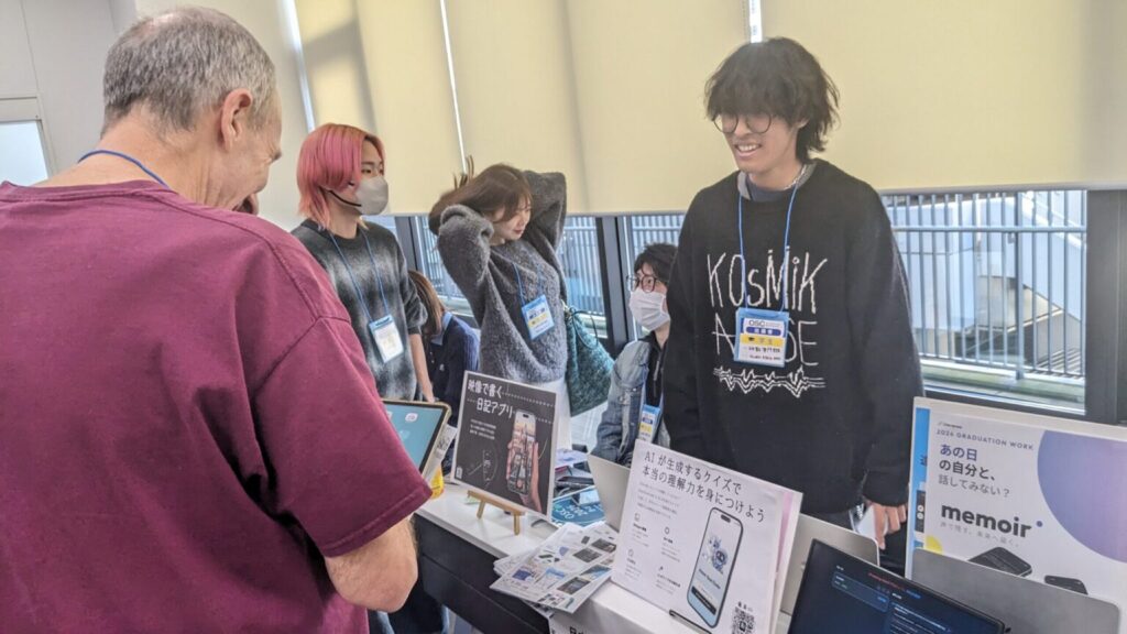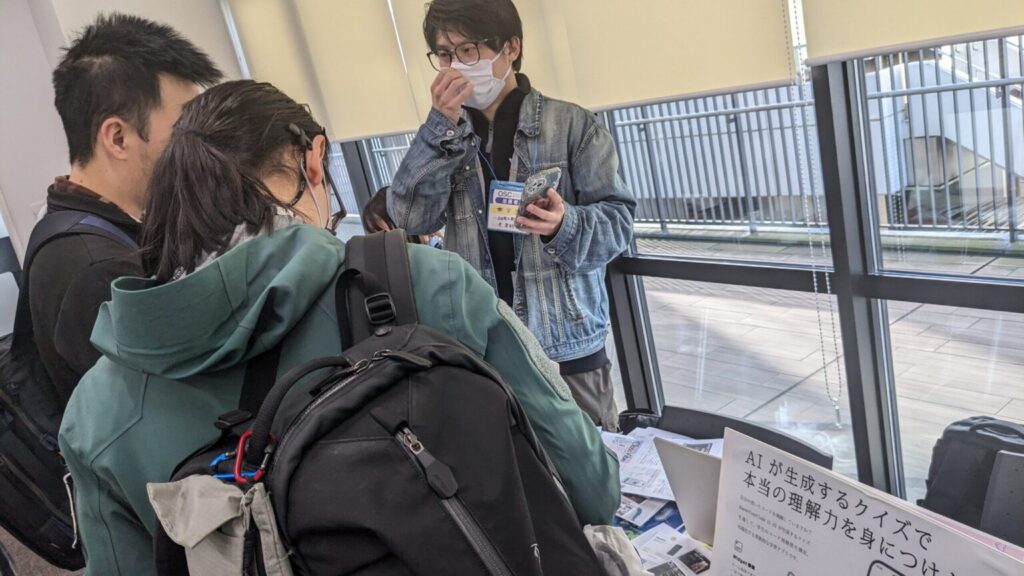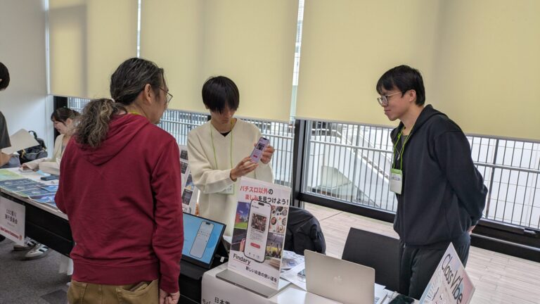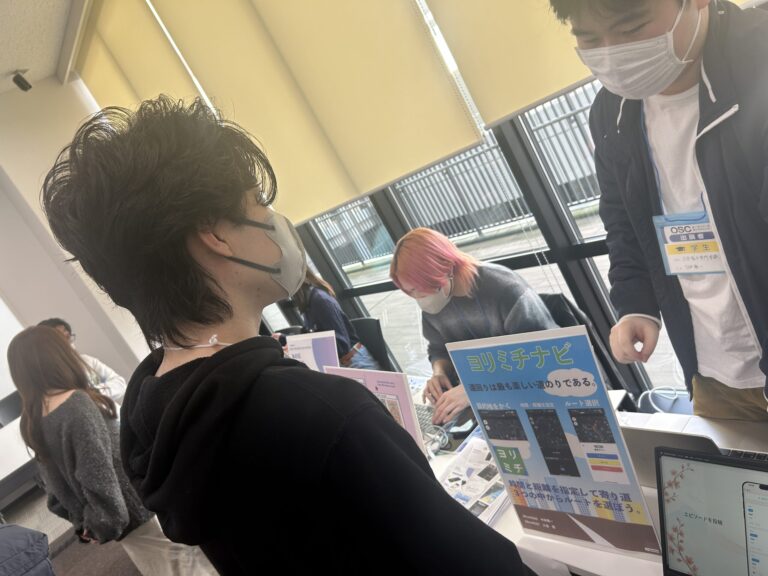 オープンソースカンファレンスには、あったかいお客様が多く、学生たちの話をしっかりと聞いてくださいました。「説明が苦手だから、あまりお客さん来ないといいなぁ(笑)」なんて言っていた学生も、そんな「前のめり」に聞いてくださるお客様の姿勢に、段々とアプリの良いところをうまく説明できるようになっていった姿が印象深く感じました